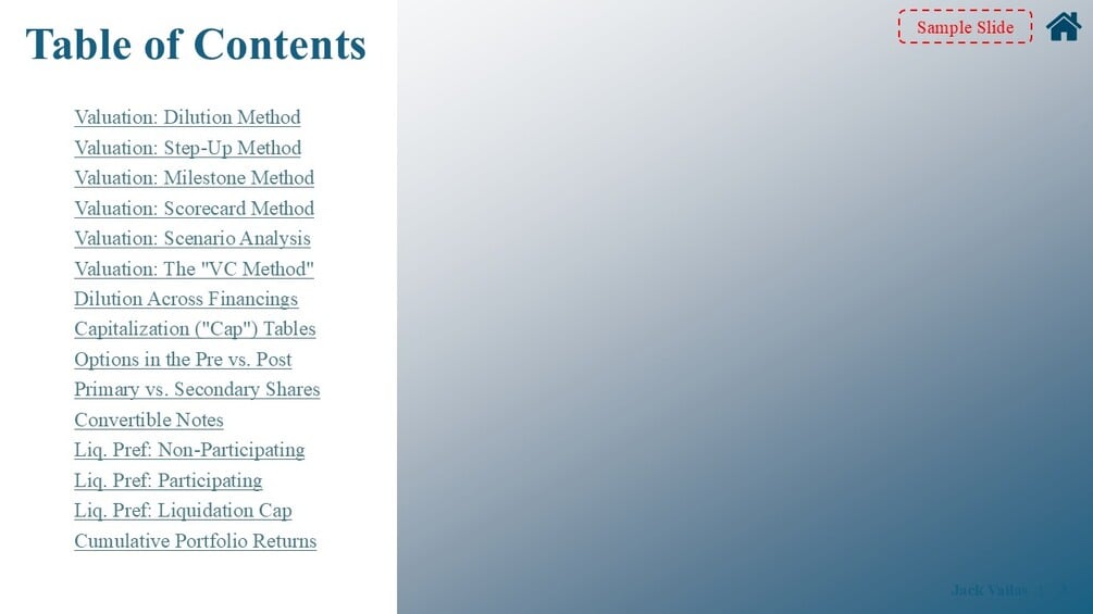 Unable to find any high-quality resources on venture math, I created a problem set and guide and had them vetted by several blue-chip VCs. The hope was to create the gold standard resource, covering most quantitative topics you might see on the job or during an interview. I hope this helps and happy modeling.